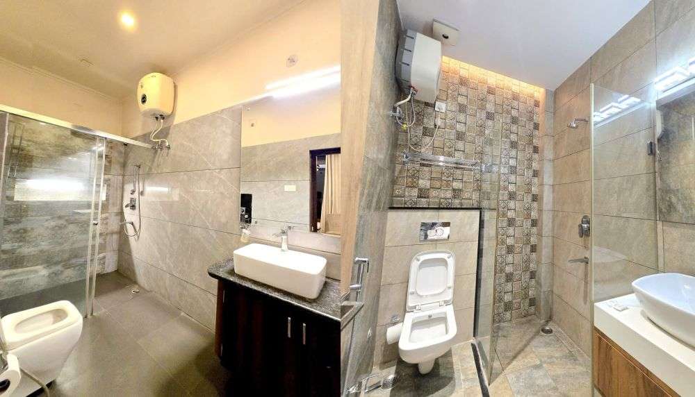 Enjoy a spotless, private bathroom equipped with essential toiletries, fresh towels, and a 24×7 hot/cold water facility.